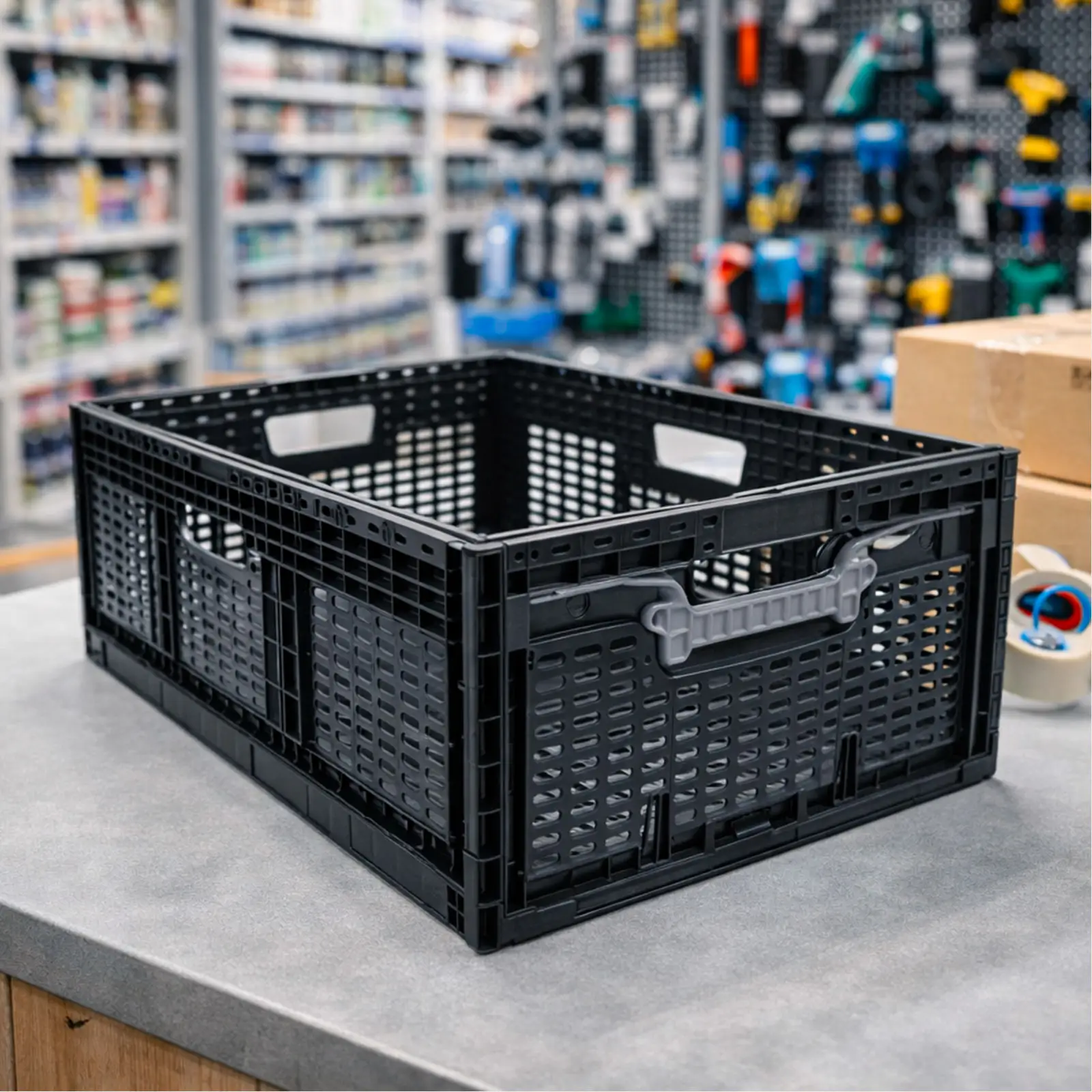 Optimize your space with our 46-liter folding crate, ideal for storing, transporting, or displaying all types of products. Practical, compact, and durable, it adapts to all professional environments.