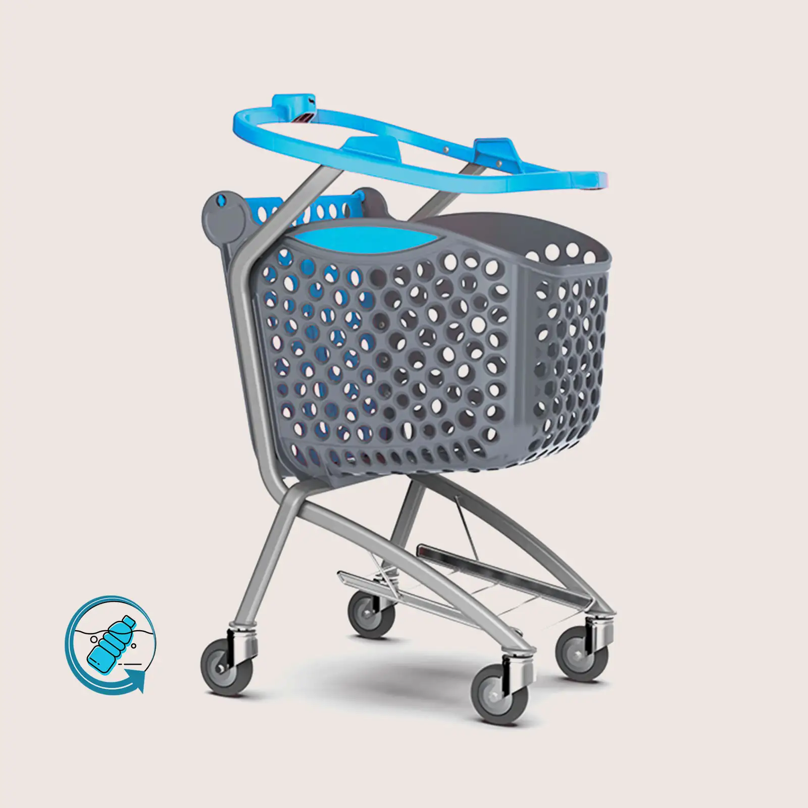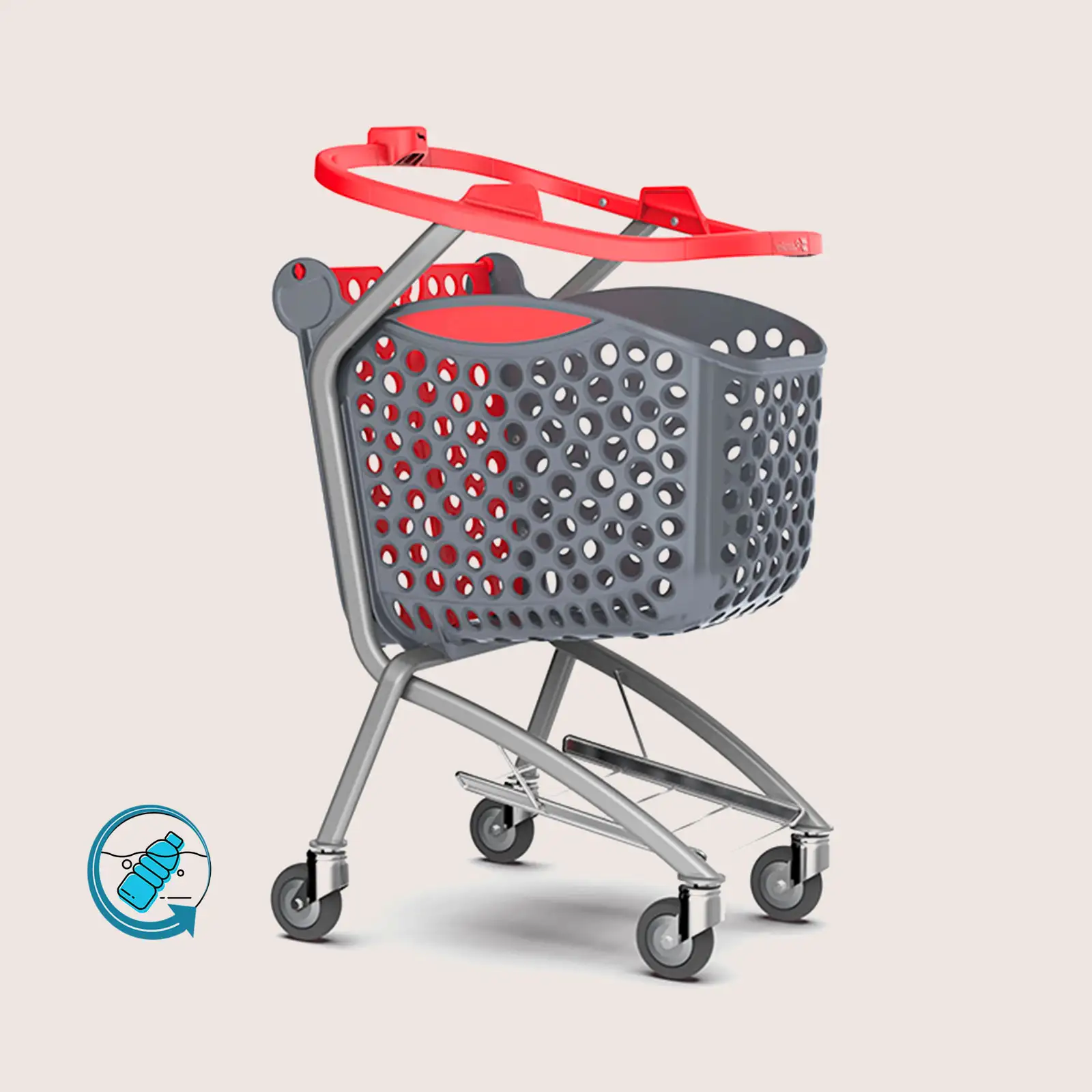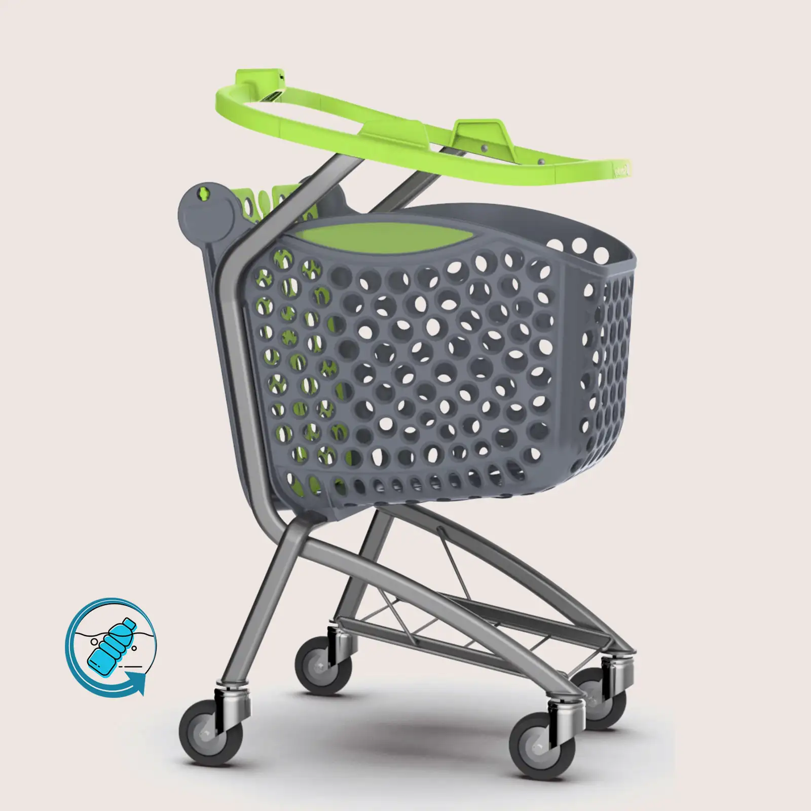 Made from recycled plastic mainly sourced from marine recycling, its anthracite grey shopping basket combines sustainability and durability. It also features a metal base for safely carrying heavy loads.