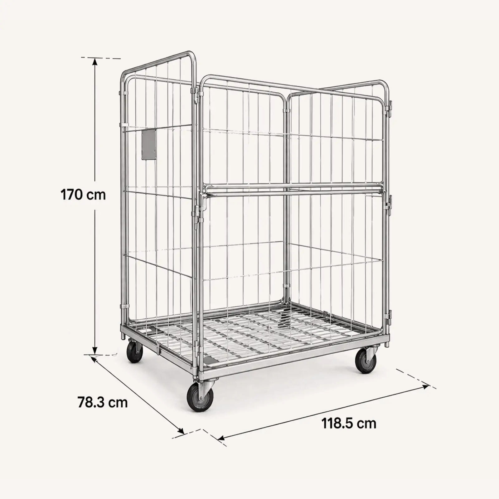 Transport your goods safely. Fully enclosed with a mesh door, this roll conteneur effectively protects against falls and unauthorized access.