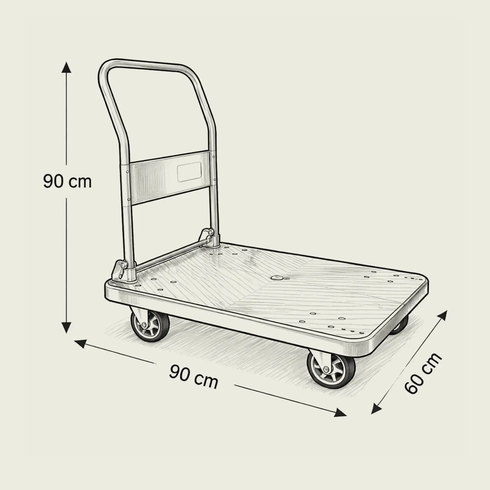 L x l x h : 90 x 60 x 90 cm – format stable et pratique pour tout type de charge.