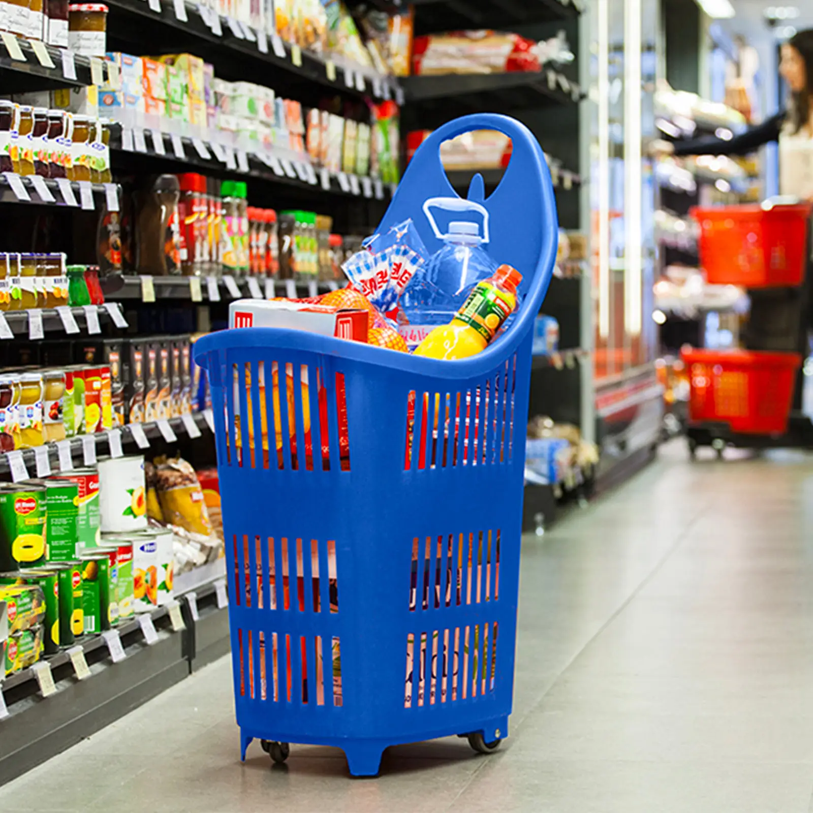 Optimisez l’expérience de vos clients avec notre panier à roulettes 70 litres, un modèle monobloc conçu pour allier robustesse, praticité et gain de place.