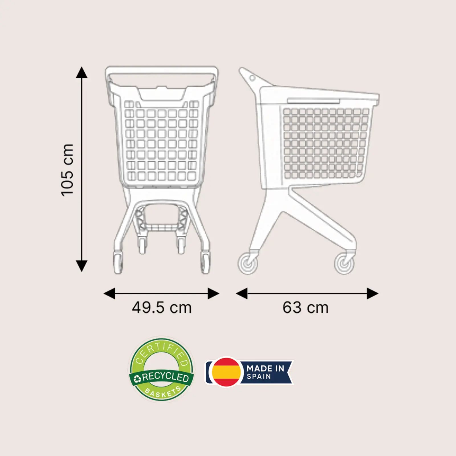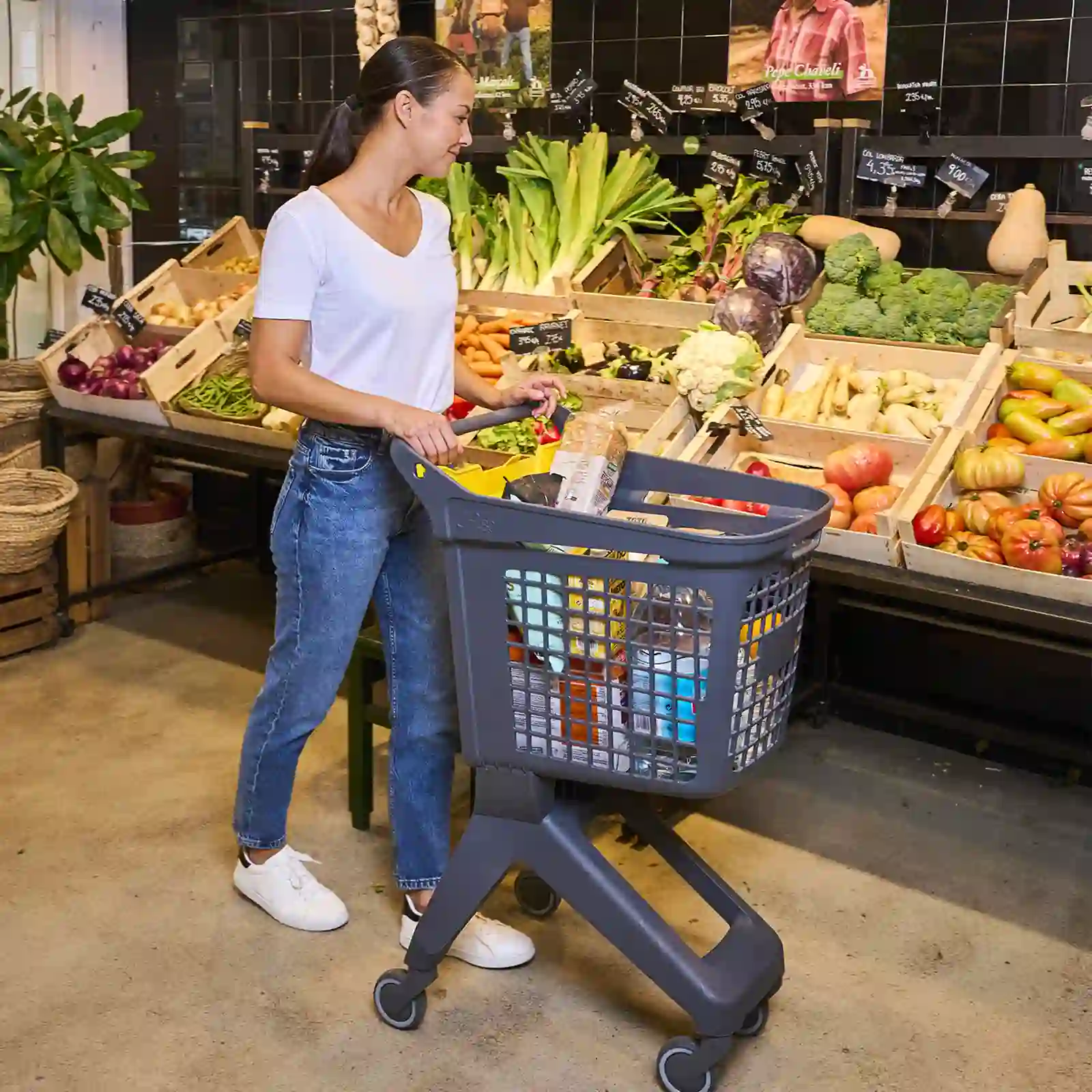 Optimisez l’expérience d’achat avec notre petit chariot en plastique de 80 litres, spécialement conçu pour les magasins urbains et de proximité. Grâce à sa taille compacte et ses quatre roues pivotantes, il offre une maniabilité exceptionnelle, même dans les allées les plus étroites.